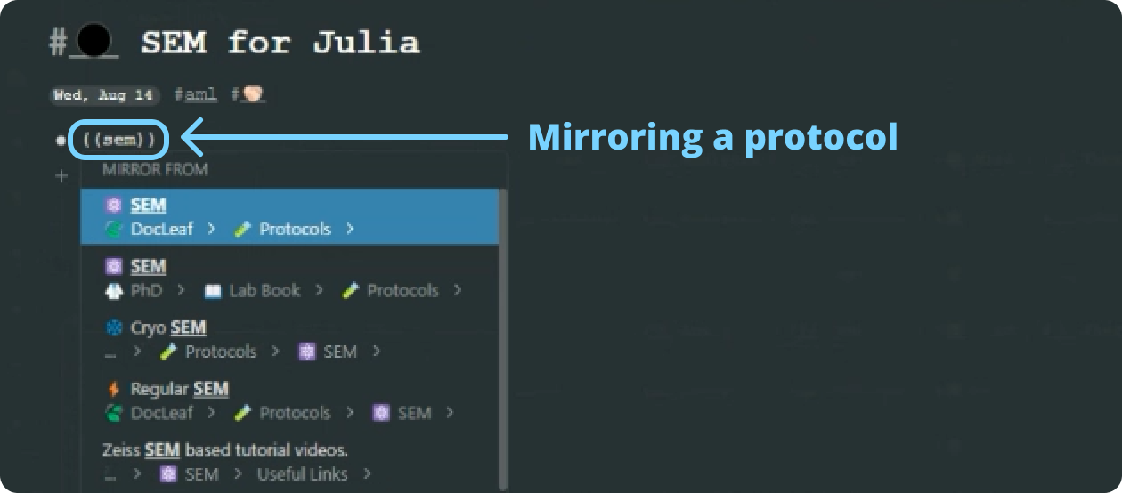 Workflowy also lets Jack to easily capture and find information he needs to reference later, from experimental protocols to meeting notes. Features like search, tags, and mirroring make retrieving this knowledge frictionless.